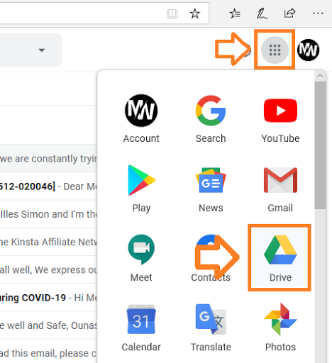 - Click on the Google apps icon located at top-right corner, beside your Gmail profile picture.