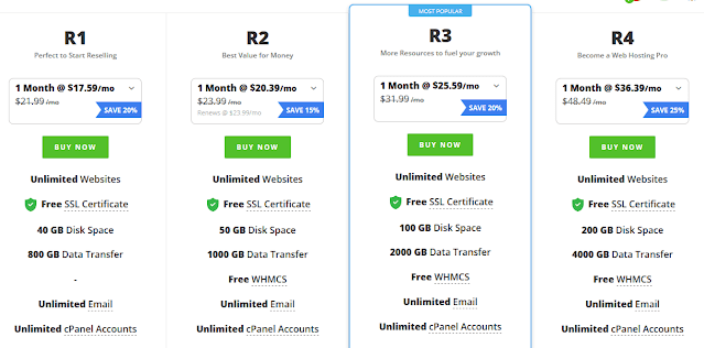 - Windows Reseller Hosting is bit different than the Linux Reseller Hosting. It offers 4 Hosting Plans. The Plan R1 monthly rate is $20.49/month. It also offers Free SSL certificate. Disk Space is $10GB quite low as compare to Linux Reseller Hosting. Data Transfer/ Bandwidth is $200GB, again quite low as compare to Linux Reseller Hosting.